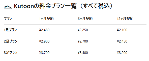 📦 Kutoonの料金プラン一覧